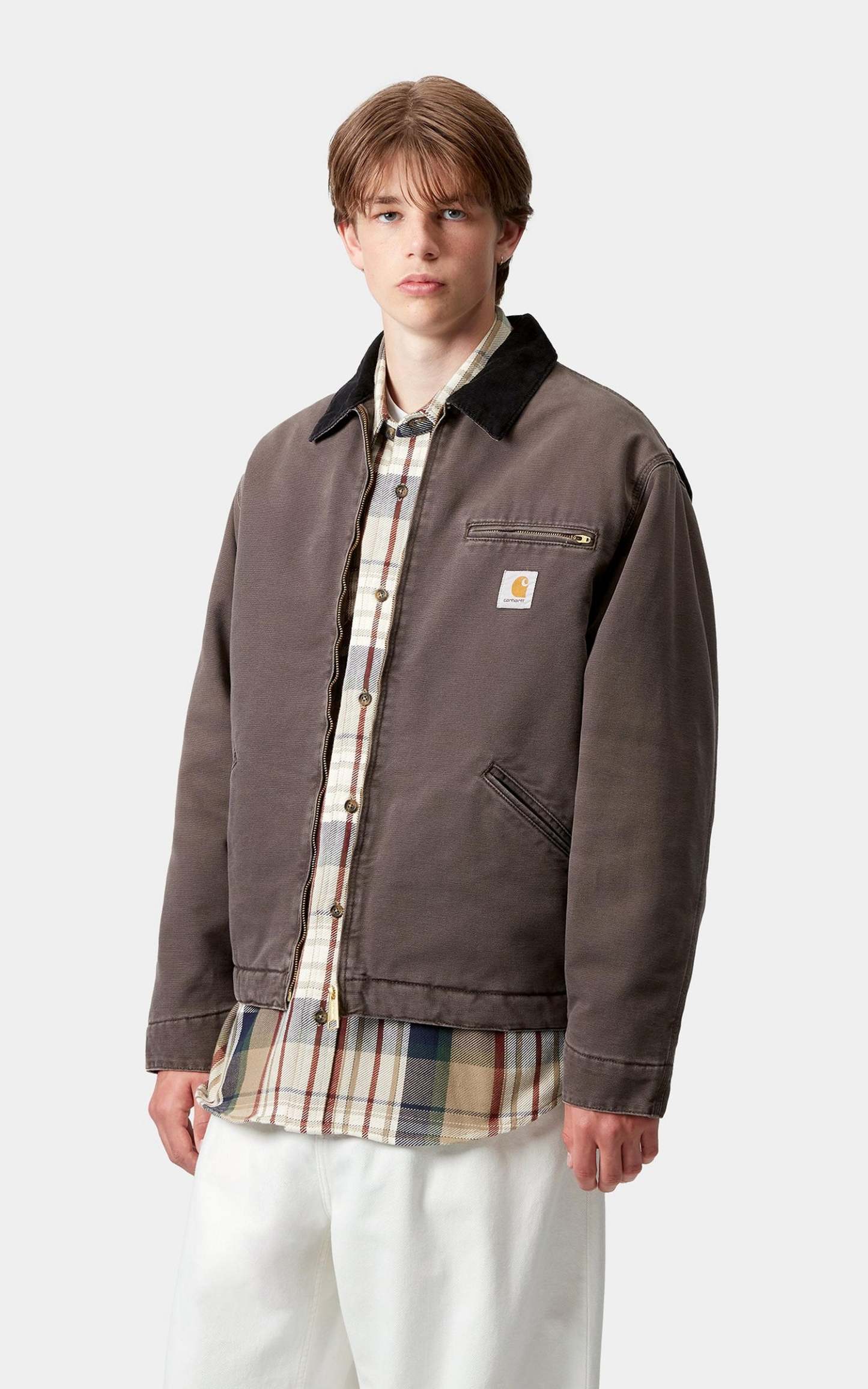 The OG Detroit Jacket is made in the original loose fit from unlined, heavyweight Dearborn Canvas. A two-way front zip, corduroy collar, and zipped chest pocket offer tactile touches. The item also has an inside chest pocket and two front welt pockets. An adjustable bottom band and cuffs offer a more adaptable fit. A woven Square Label completes the design.