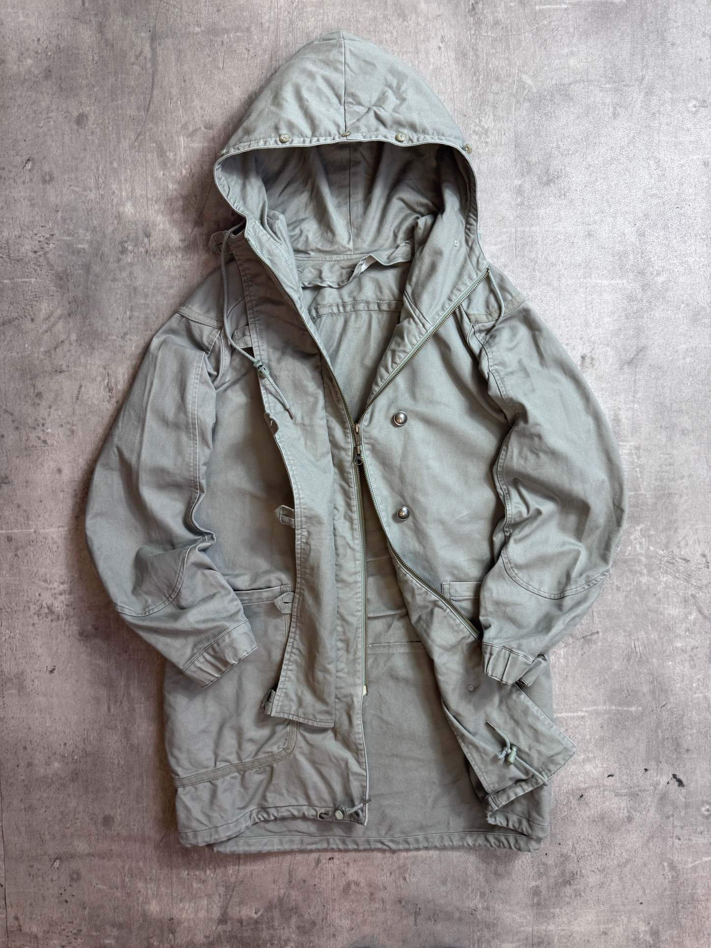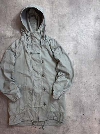 Featuring a button latch closure, structured silhouette, and multiple utility pockets, it offers both practicality and sophisticated design. Perfect for collectors, fans of Japanese designers, or anyone seeking a versatile parka that blends form and function.